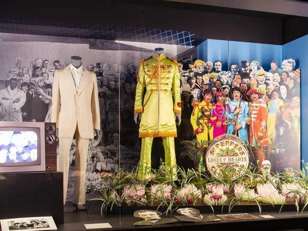 Beatlemania is displayed in all its glory with two of John Lennon’s classic white suits and his costume from the Sgt. Pepper's Lonely Hearts Club Band album cover on show, the original cover artwork sketch for the Beatles’ 1968 single Revolutions, and the handwritten lyrics to their 1967 song Lucy in the Sky with Diamonds.