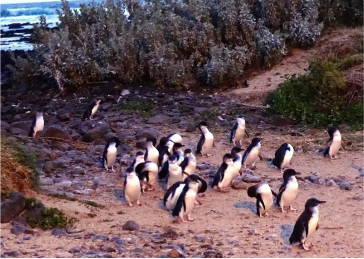 The world-renowned Penguin Parade is a popular attraction, enabling tourists to watch dozens of Little Penguins waddle across the beach while the sun is setting over the coastal hills.