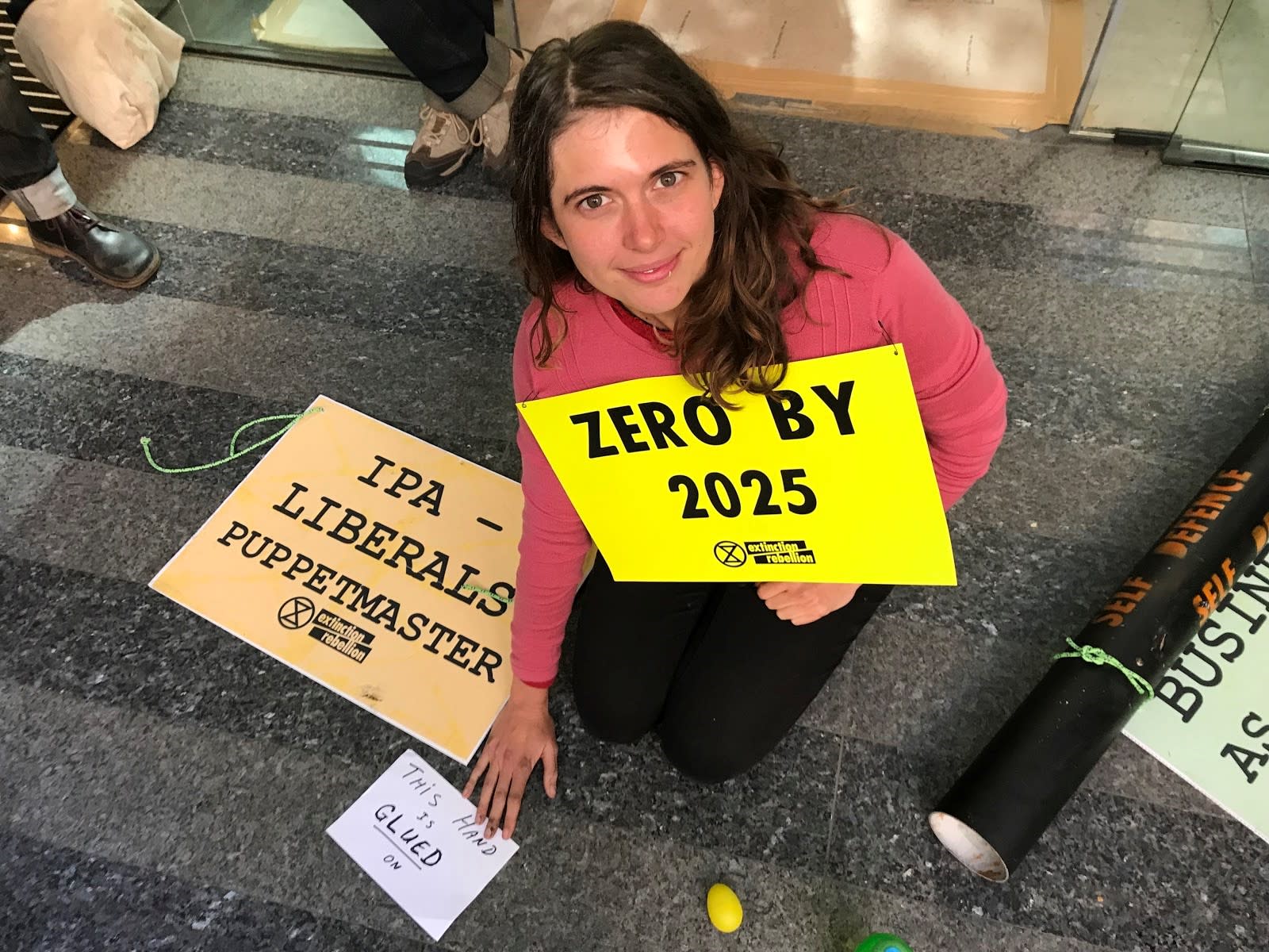 During the demonstration five activists, including a teenager and a retiree, superglued their hands to the steps of the IPA's Collins Street headquarters.