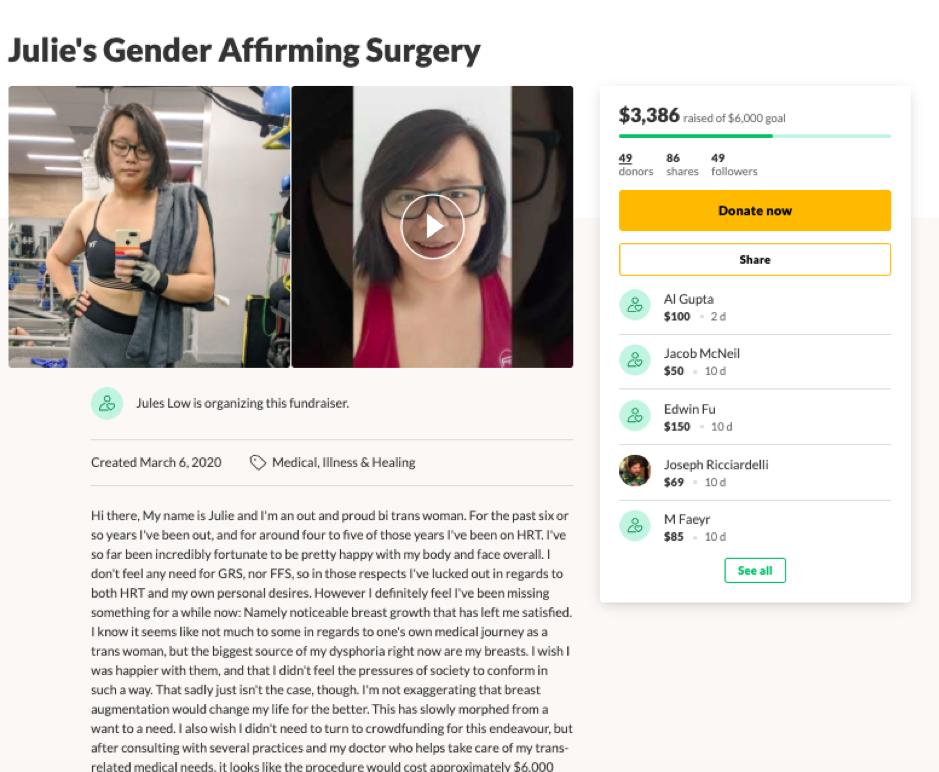 Activist and student-teacher Julie Low had to start a GoFundMe campaign to pay for her breast augmentation surgery.