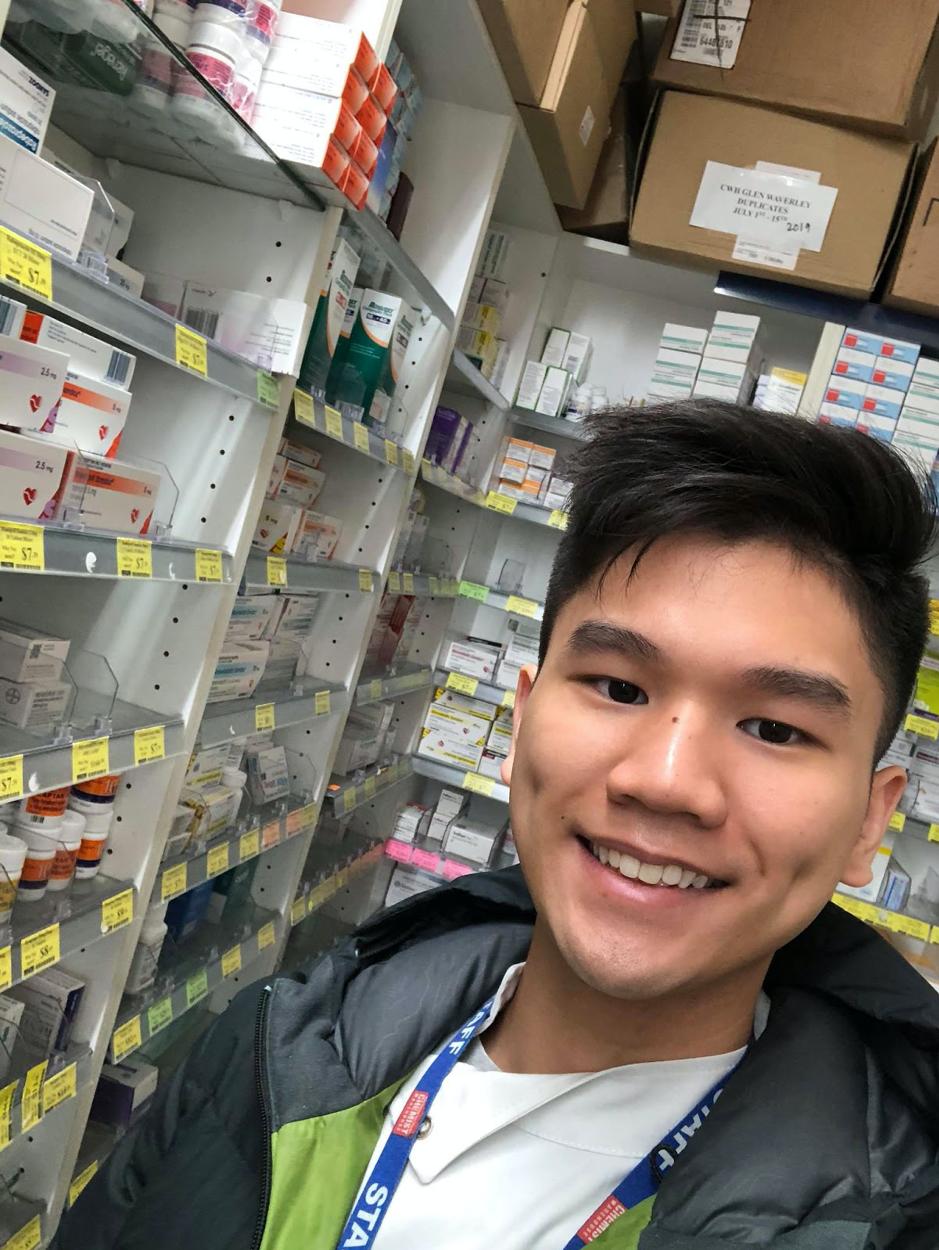 Pharmacist Benjamin Chow is continuing to work at Chemist Warehouse, while also offering his services at hospitals due to staff shortage.