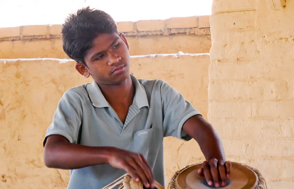 Eighth grade student Vishal, 13, is learning the tabla, something he says helped him settle into life at KSV. The friendliness of staff members was also a key part of his easy transition.
