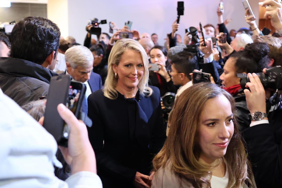 Through the door emerged Assange's spokespeople: Australian human rights lawyer Jennifer Robinson, American defence lawyer Barry Pollack and Assange’s wife and human rights lawyer Stella Assange.