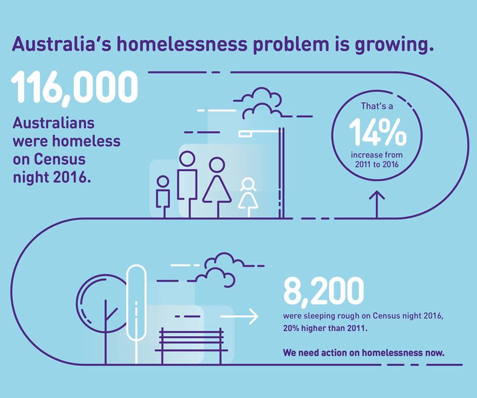 Haven Home Safe and Launch Housing are among the organisations raising awareness for the homeless crisis in Australia.