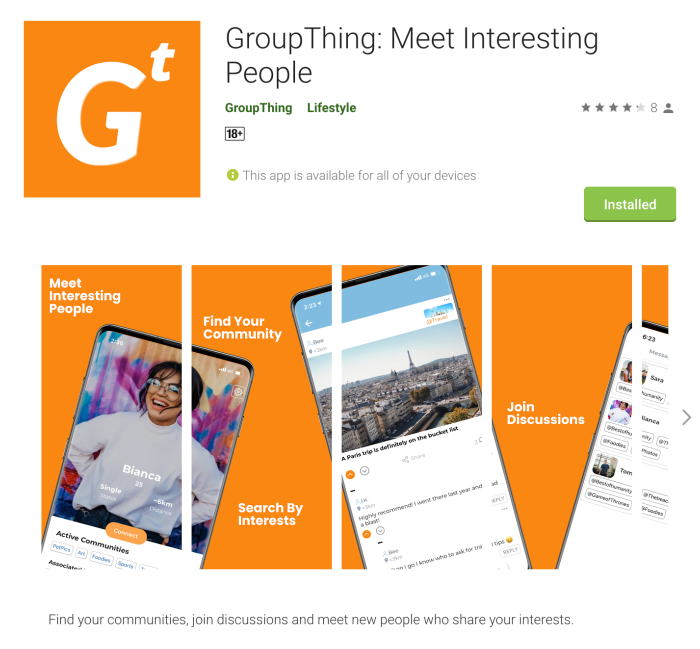 The app, called GroupThing, allows people to join groups and find people to date, or be friends with, based on similar interests.