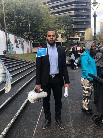 Mechanical engineer Mazin Bashir moved to Australia from Sudan one month ago. He joined Saturday's protest because he was worried for the safety of his friends and family back home.
