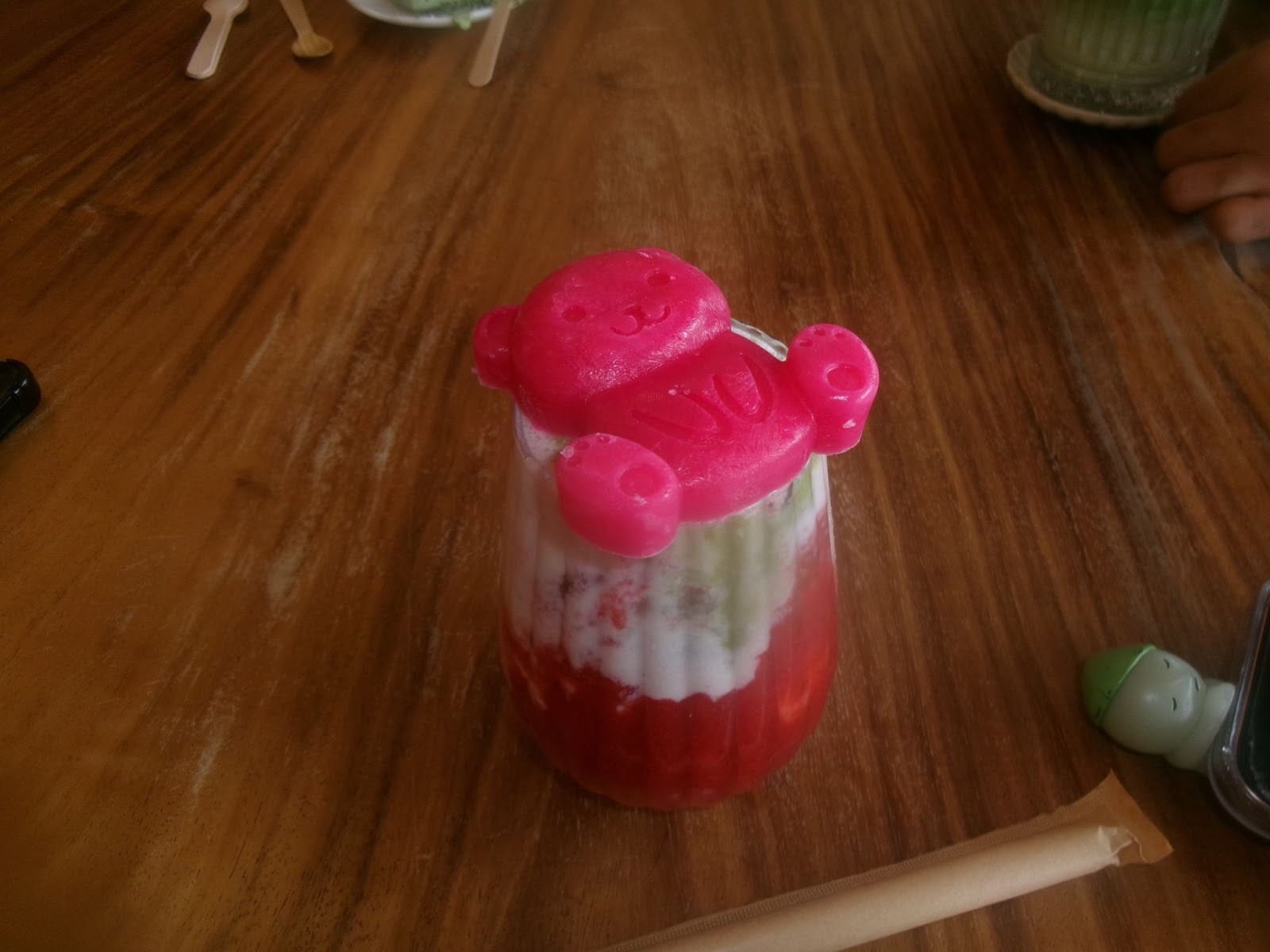 At the 1985 Kafé, I tried a strawberry matcha, which had a fun addition of a favoured cartoon-shaped ice cube for decoration.