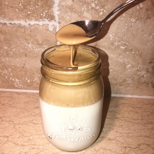 Prep a glass with ice and the milk beverage of choice; whether that be that dairy, soy, almond or oat. Top up with the fluffy coffee mixture and stir to enjoy.