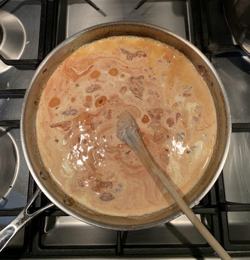 The sauce resembles a carbonara with the multitude of cream, butter and cheese that is included.
