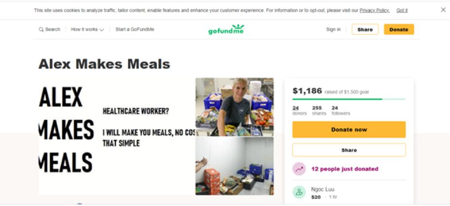 You can volunteer with Alex Makes Meals by sending a message to their Facebook group. Here.