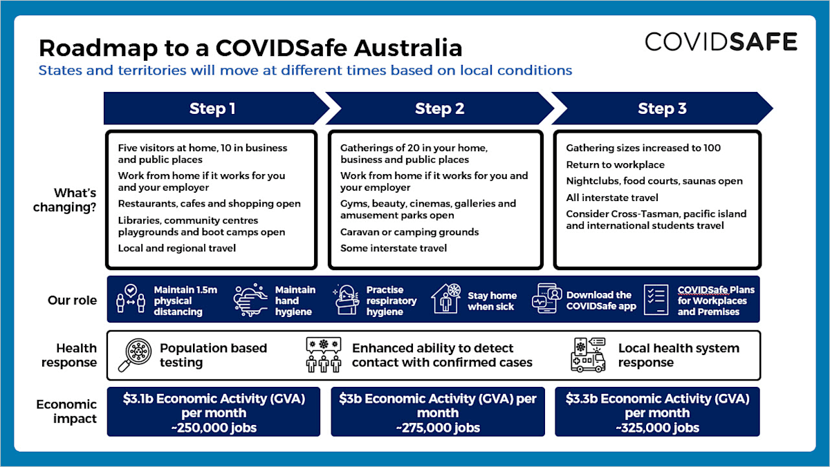 Prime Minister Scott Morrison has announced a three-step plan to reopen Australia by July.