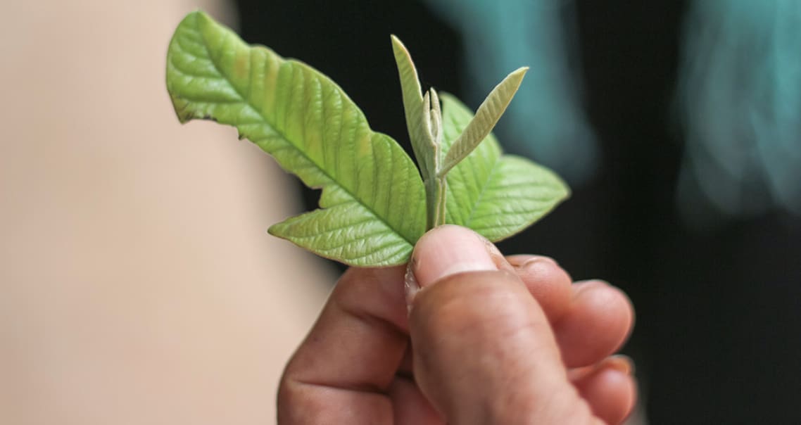 Deputy chief of Kbal Koh, Hor Bun Heang, is the local traditional healer. His methods include using herbs and plants. Mr Heang points out a local guava tree whose leaves he says can be used to treat diarrhoea by chewing them and a white flowering plant, beneficial for stomach pain.
