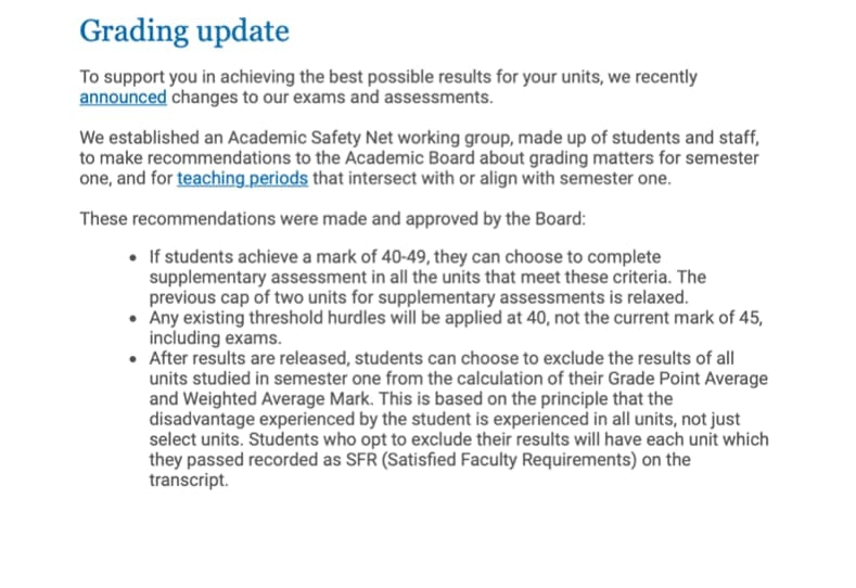But if students receive a fail grade of 40-49, they can now complete a supplementary assessment to pass the unit.