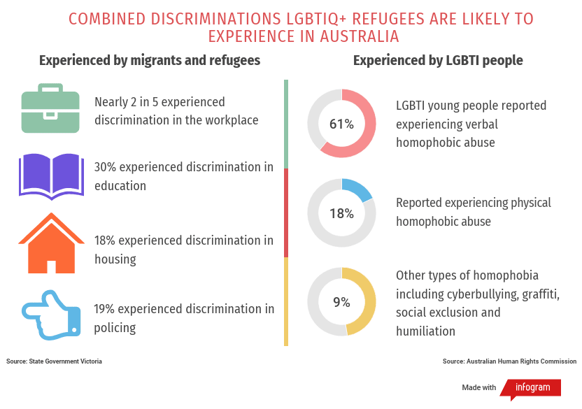 Australian-based refugee and LGBTIQ+ organisations do not cater to the combined challenges queer refugees experience, she said.