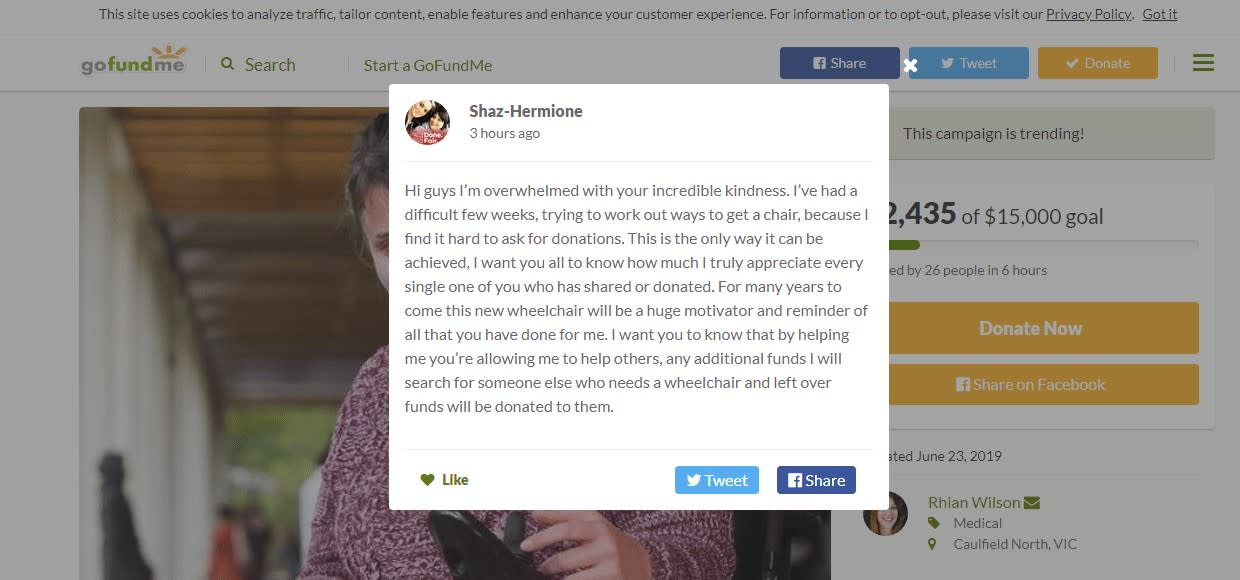On the flipside, it took less than a day for 30 people to chip in more than $4000 via her GoFundMe campaign.