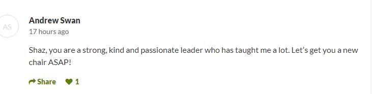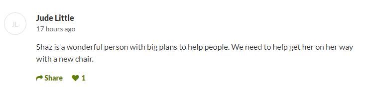 “But I want everyone who has contributed or will contribute to know that when I see the chair I will remember them and always be grateful to them.”
