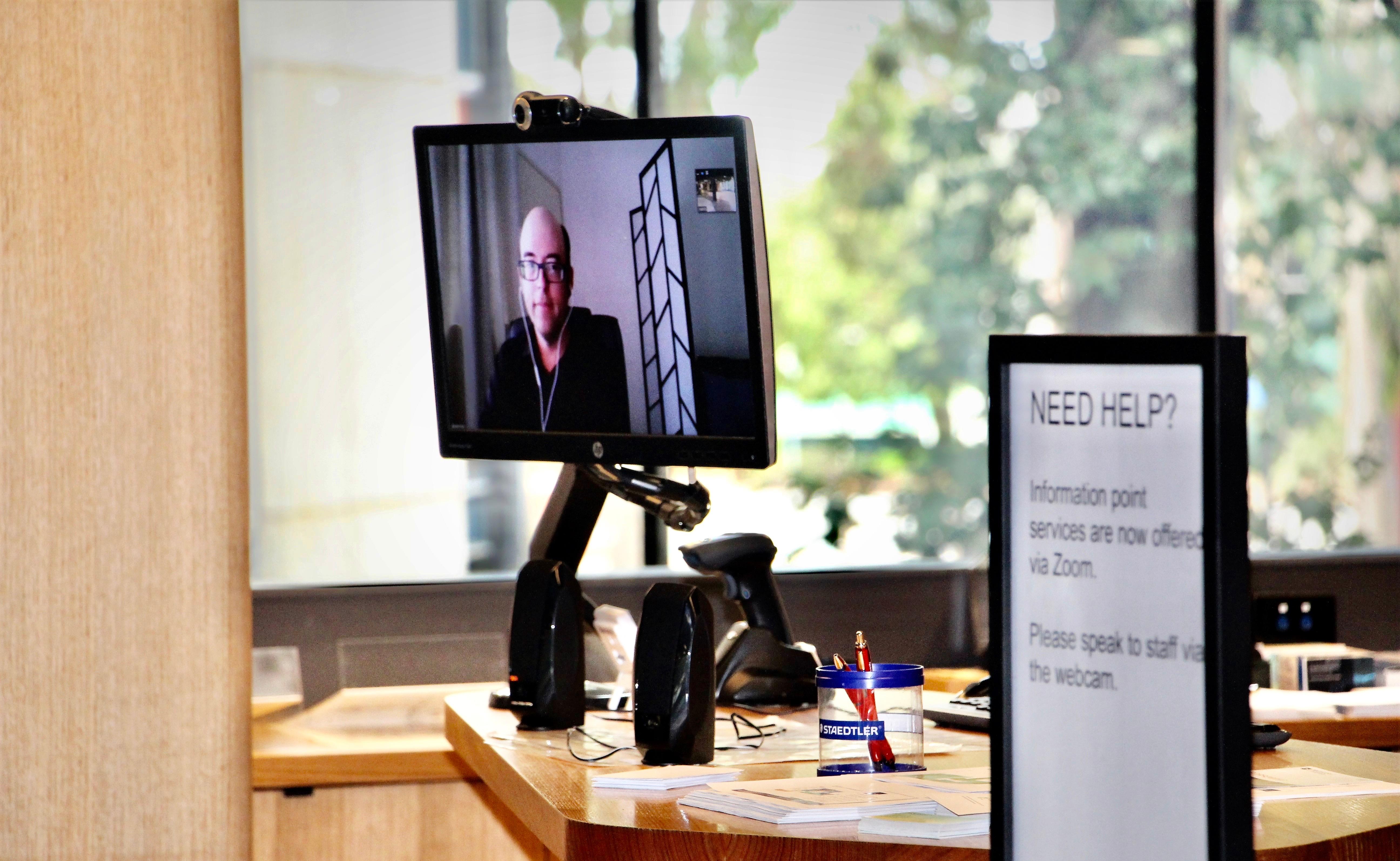 The staff at Monash’s Sir Louis Matheson Library in Clayton have innovated in a bid to help students feel connected and comfortable, adopting virtual platforms to assist them. Containing valuable resources and information booths, the library is trying its best to continue operating while following government guidelines. The Matheson library is the only library open to staff and students for reduced operating hours. Taken April 1, 2020. PHOTO: Dishi Sangani