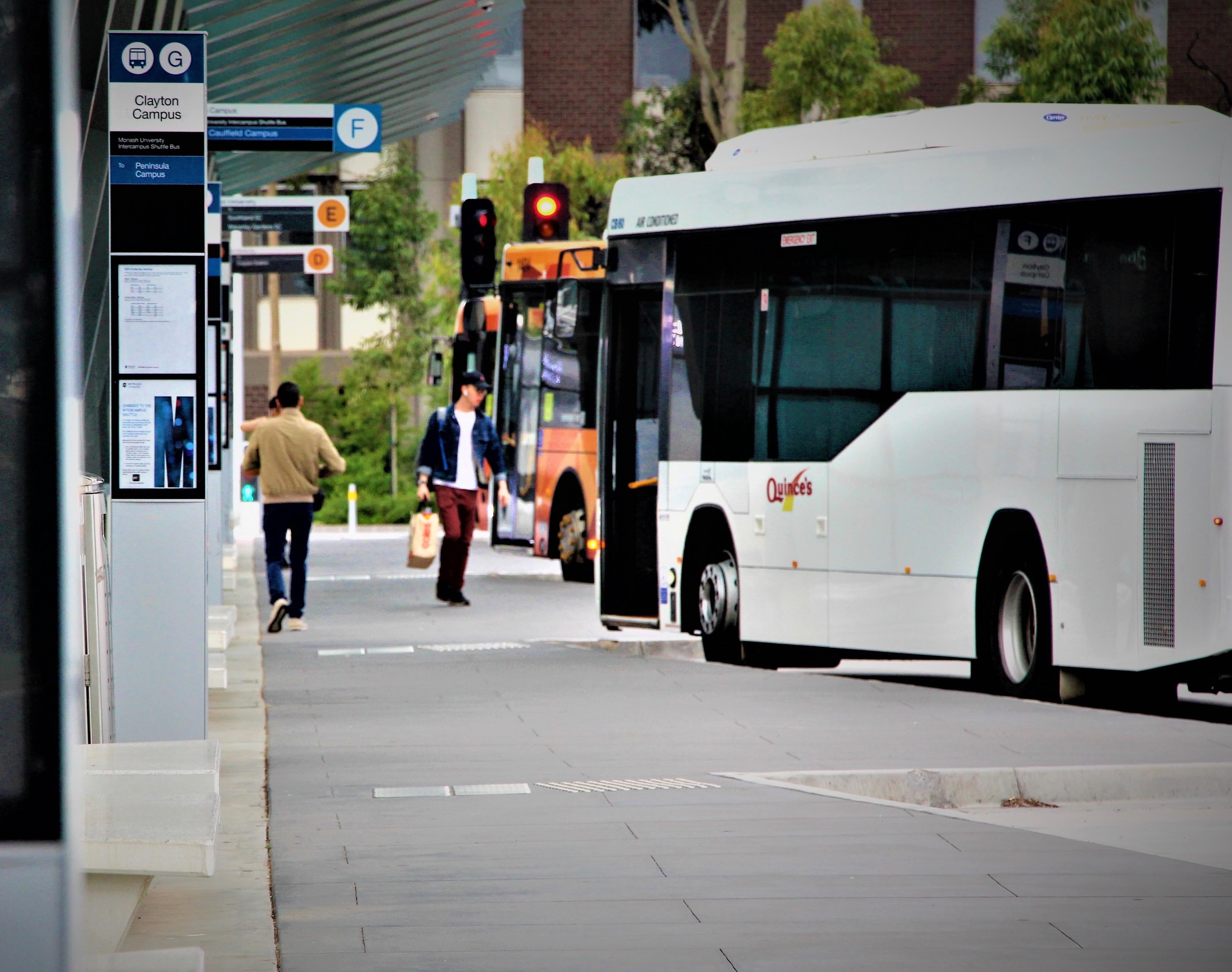 The once crowded bus loop at Clayton sees very few students commuting at this time. The majority of the buses, including the Monash campus shuttle bus, run near empty. Taken April 7, 2020. PHOTO: Dishi Sangani