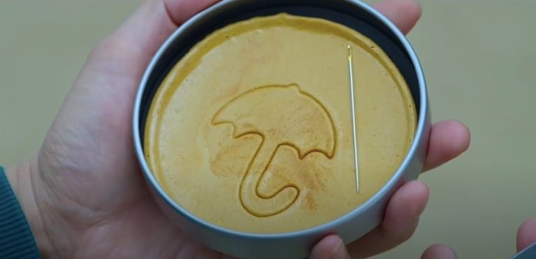 Dalgona makes an appearance in The Man with the Umbrella episode, where cash-strapped contestants are made to carve out a shape in the brittle honeycomb with a needle. They must avoid breaking it, or be executed on the spot.