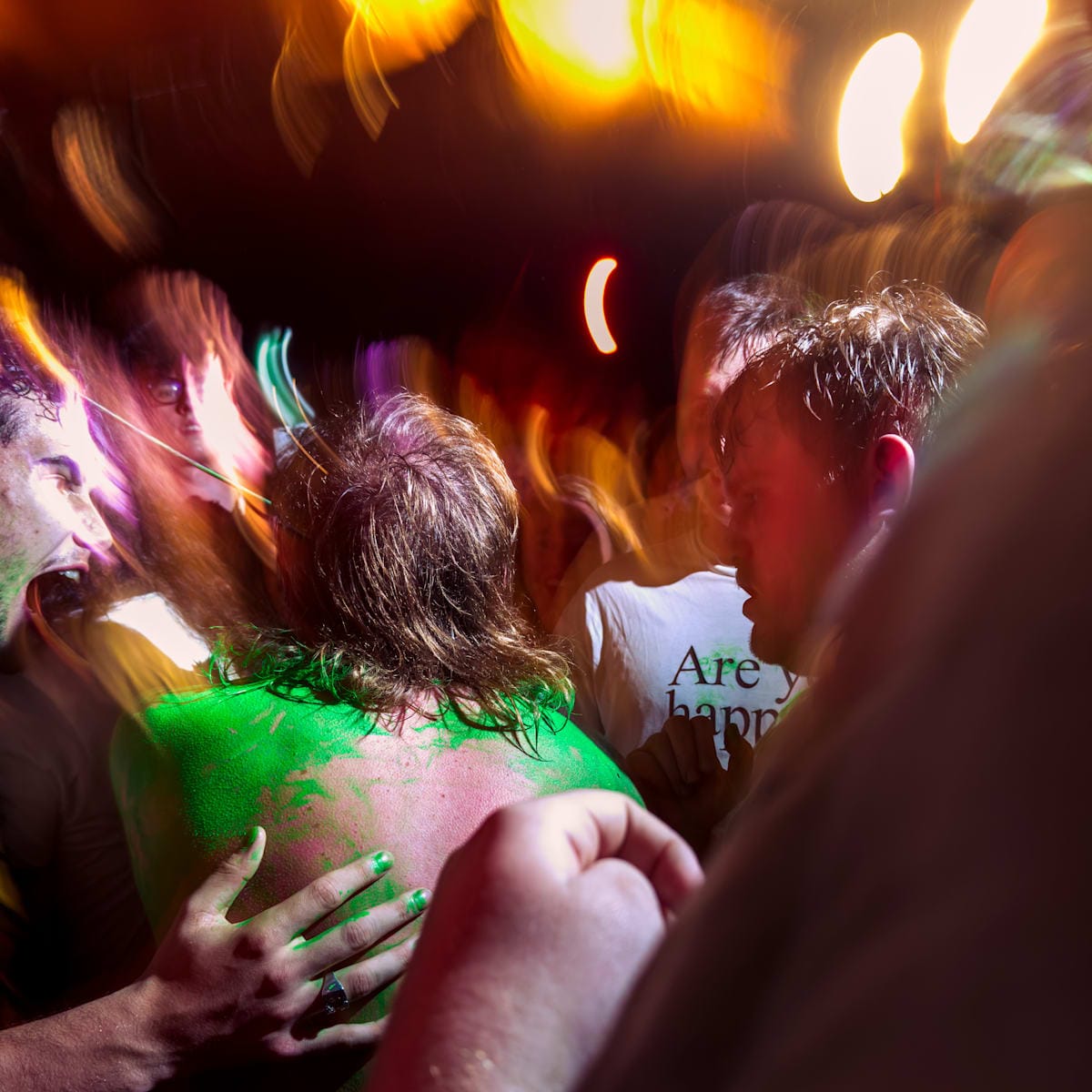 At the halfway mark of their set, Penney made a mad dash off stage, before returning half-nude, dripping in acrylic green paint.