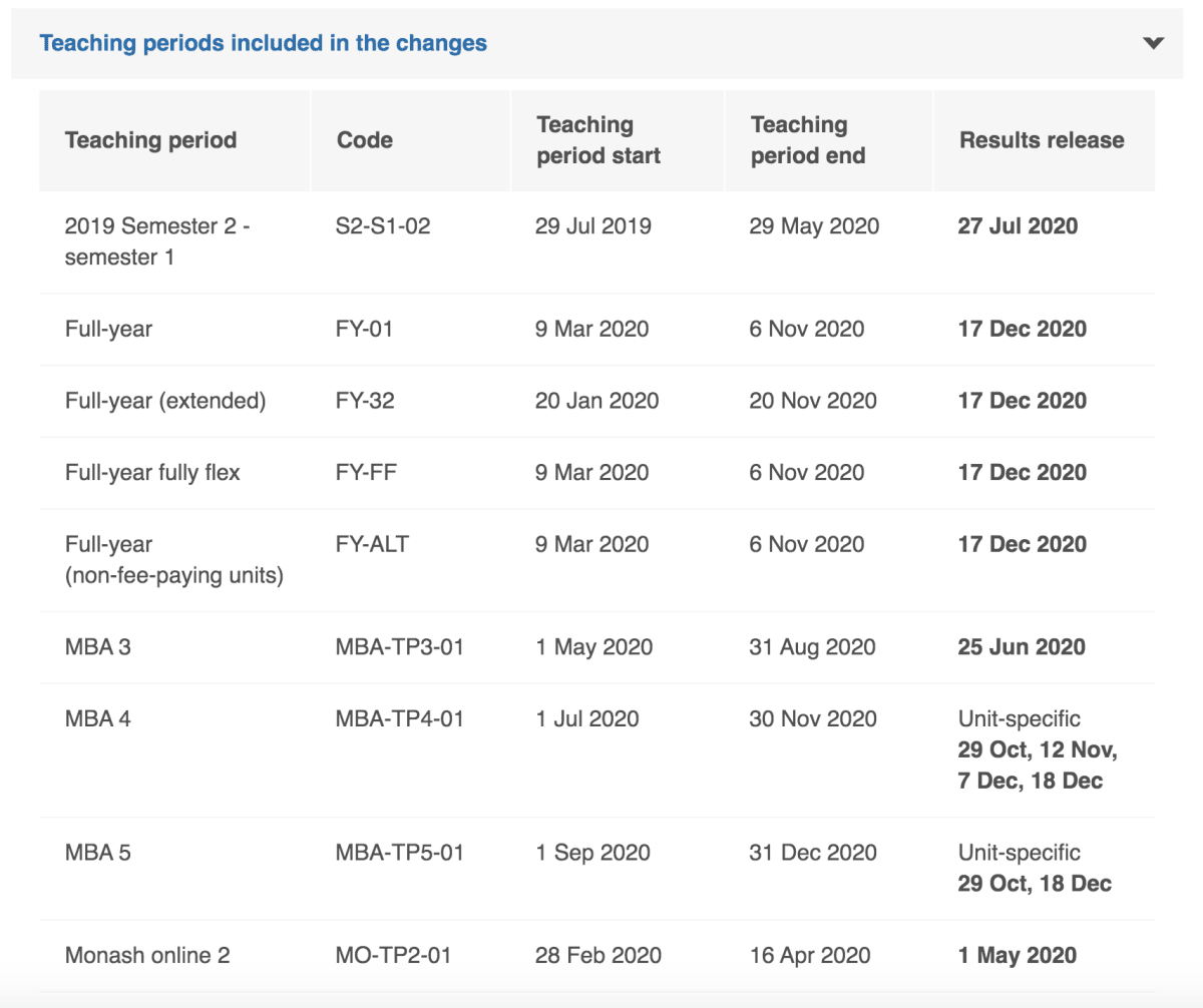 The Academic Board announced the introduction of the Safety Net in April for semester one, and July for semester two, but the changes have since been extended to include all listed eligible teaching periods from 2019 to 2021.