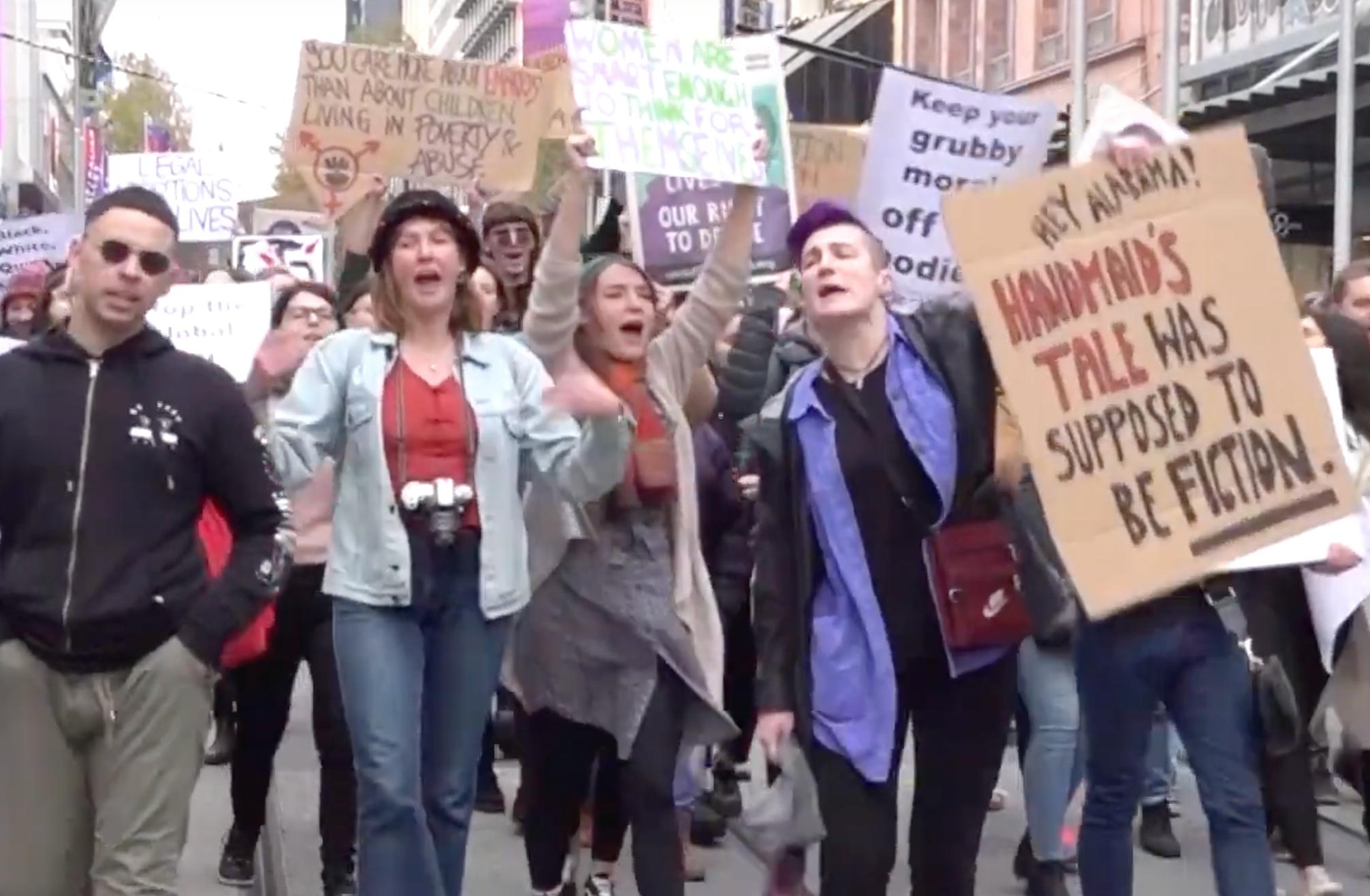 Outrage over strict USA abortion laws that prevent rape and incest victims from terminating a pregnancy spilled onto the streets of Melbourne last night.