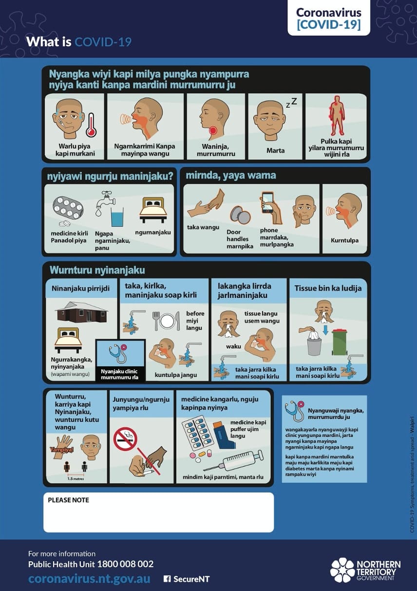 Health clinics across the Territory are also dedicated to translating COVID-19 health advice into Indigenous languages.
