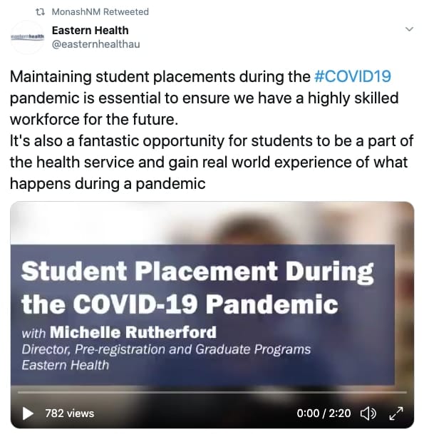 A statement issued to MOJO News from Monash University’s Faculty of Medicine, Nursing and Health Sciences recognised “the importance of clinical placement in the education of the future health care workforce”.